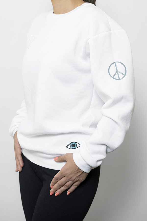 Oversized Fit, super soft Crew Neck Sweatshirt. Available in White and Heather Grey. Model is wearing a small.